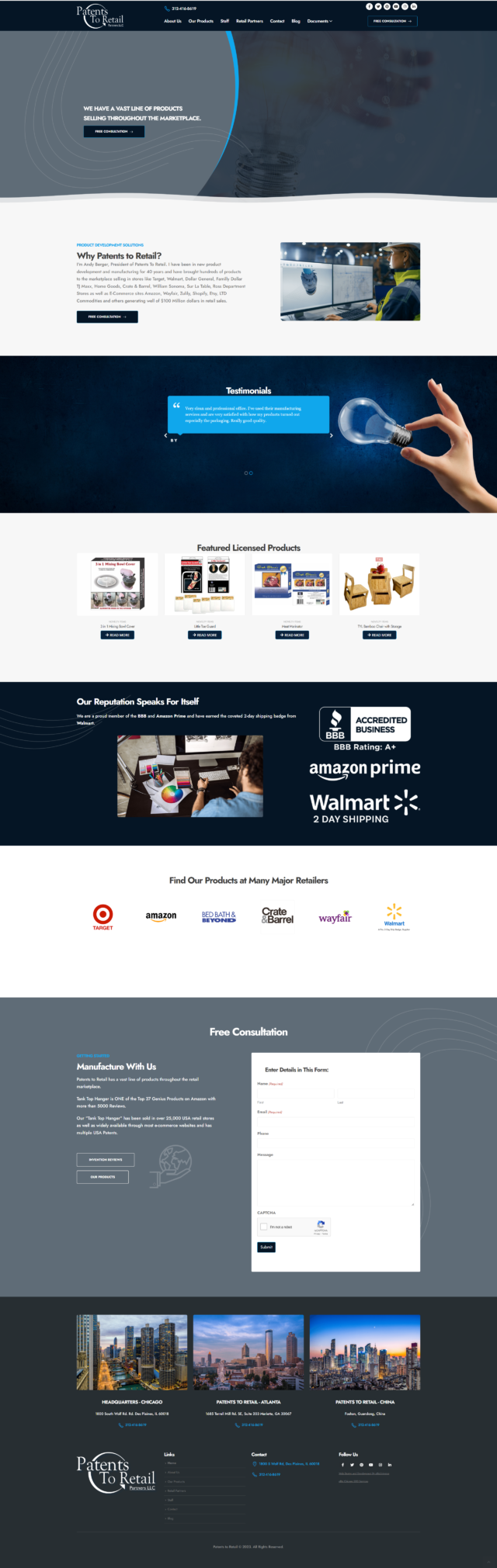 For the Patents To Retail project I was part of the website design, development, and SEO process.